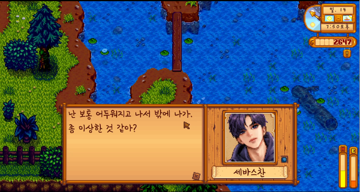 집에 돌아가는 길에 세바스찬에게 말 한번 걸어줍니다