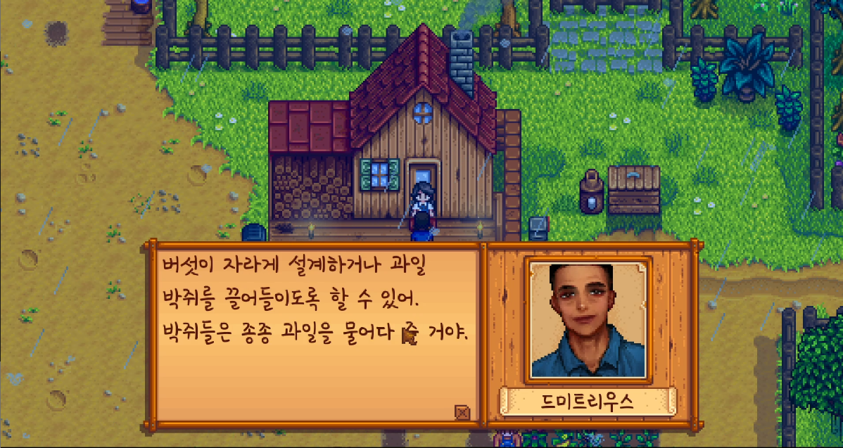 드미트리우스 아저씨가 와서 우리 농장 옆에 있는 동굴에 버섯이나 과일 박쥐를 놓아준답니다
